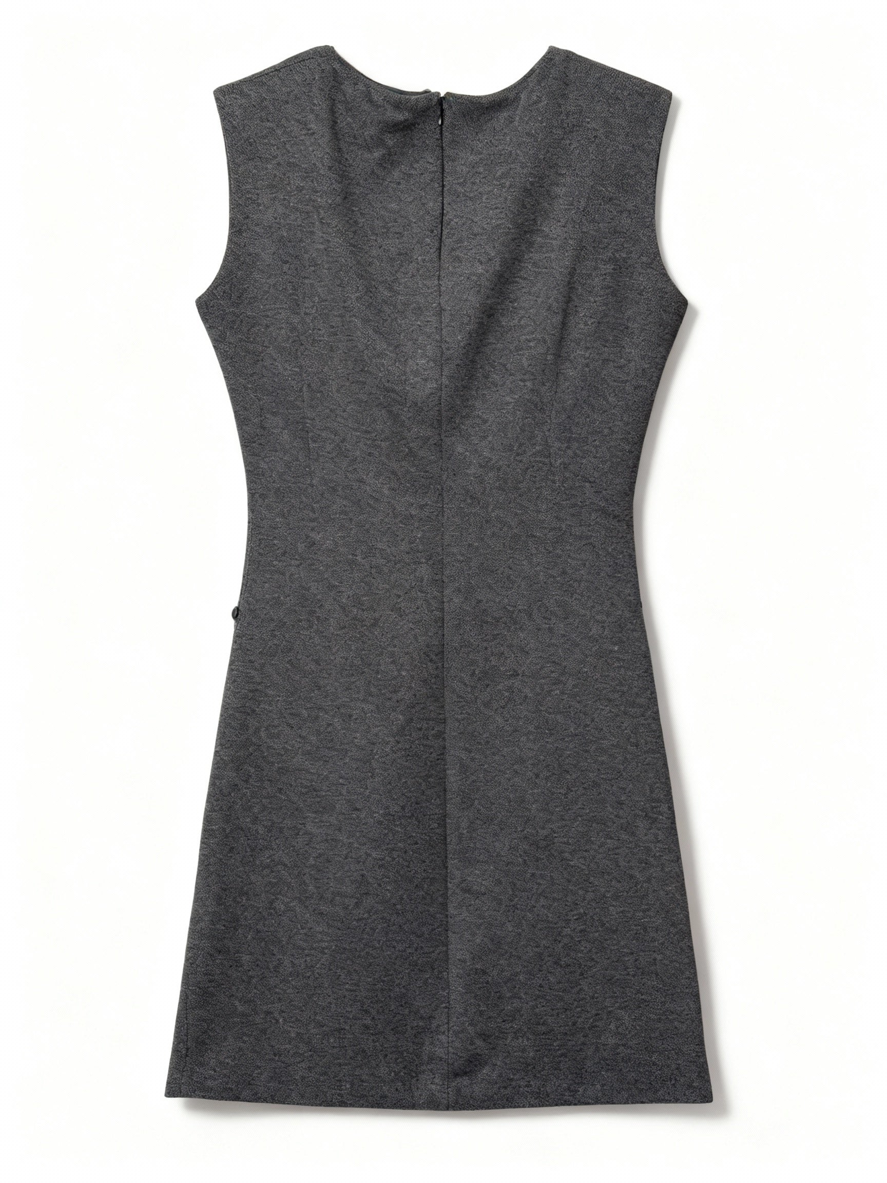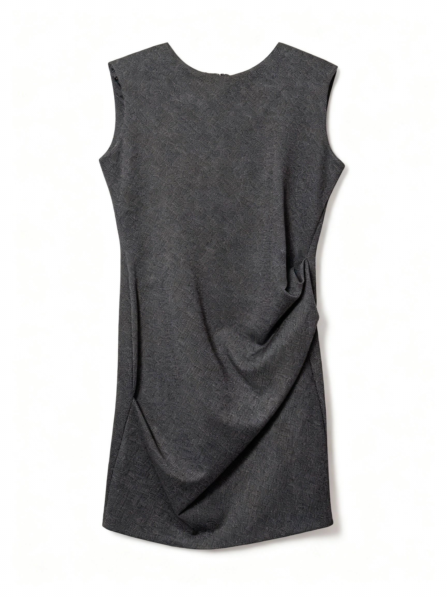 Abito corto senza maniche Atos Lombardini in tessuto tecnico color asfalto, caratterizzato da una linea pulita e contemporanea. Il design presenta una costruzione aderente sul busto e un elegante drappeggio laterale che esalta la silhouette. Chiusura posteriore con zip invisibile per una vestibilità impeccabile. Un modello raffinato e versatile, perfetto per look da giorno o da sera in chiave minimal chic.