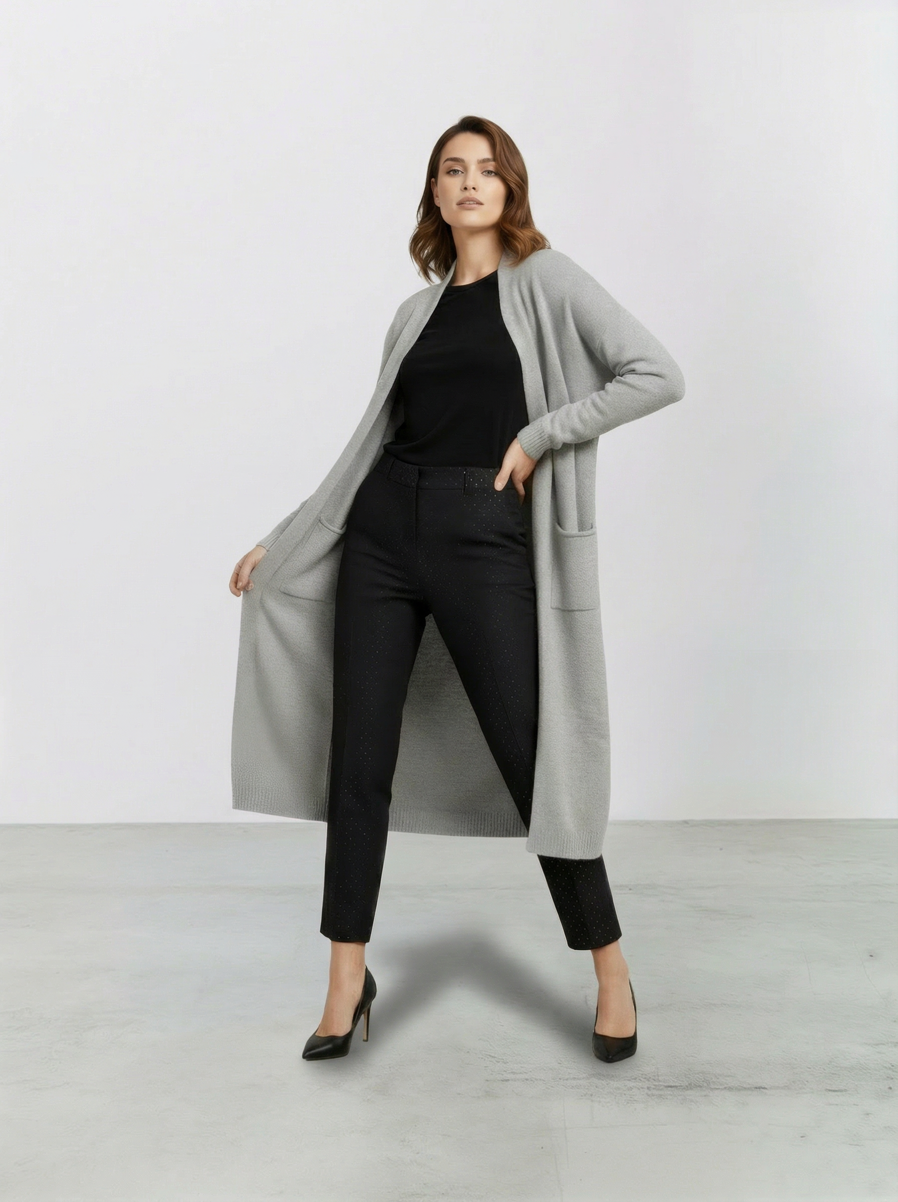 Eleganza rilassata in versione maxi: un cardigan lungo e avvolgente, perfetto per completare look minimal o per dare struttura agli outfit più casual. La mano è morbida, il peso è ideale per accompagnarti nelle mezze stagioni e oltre.