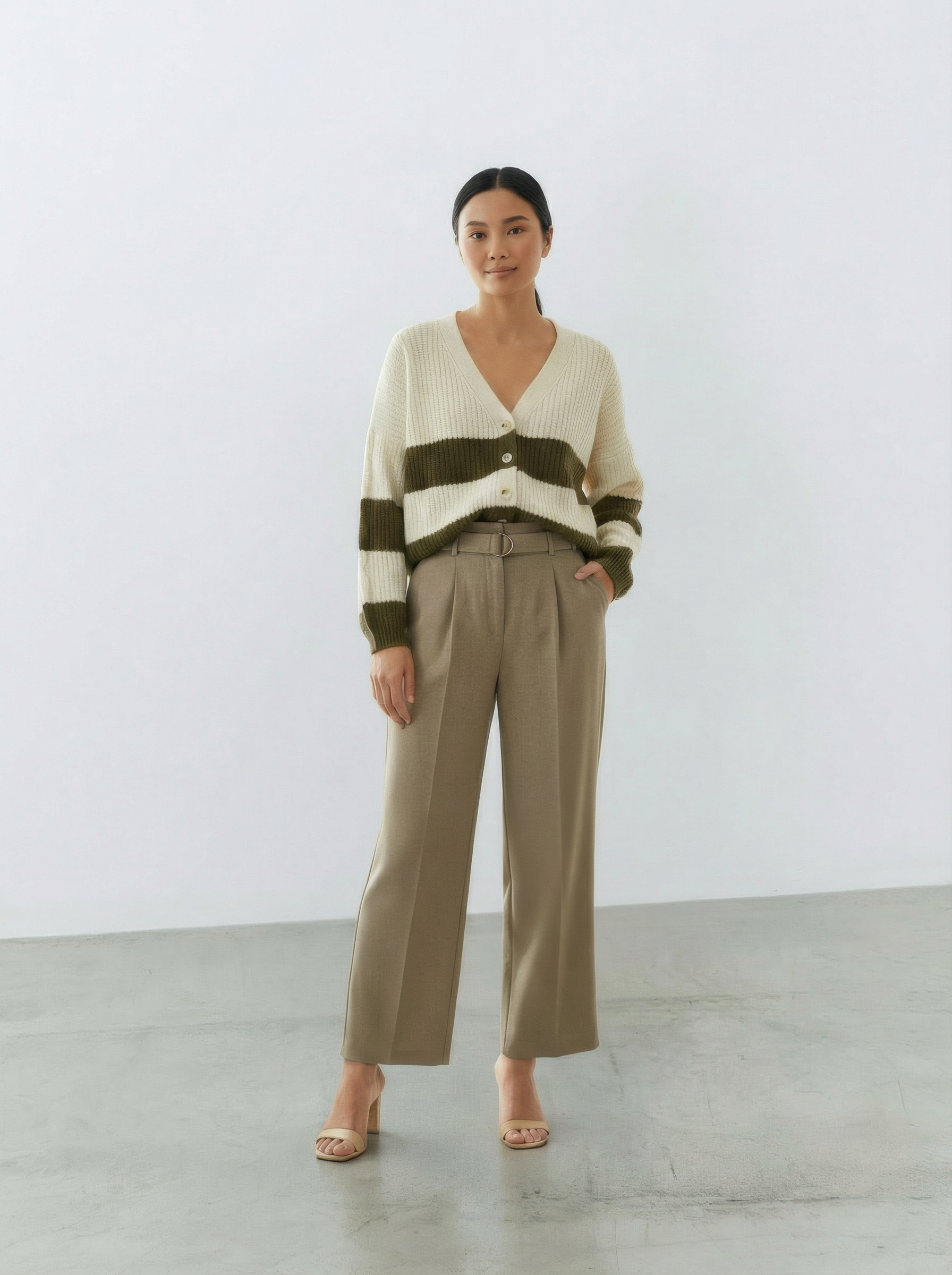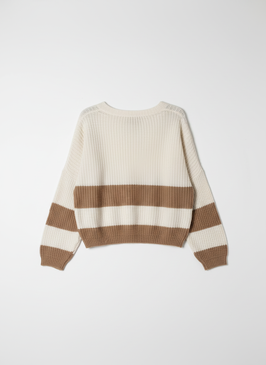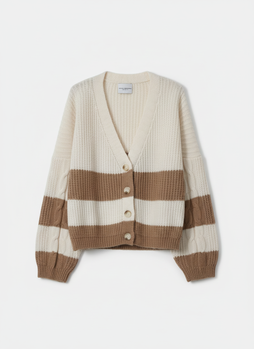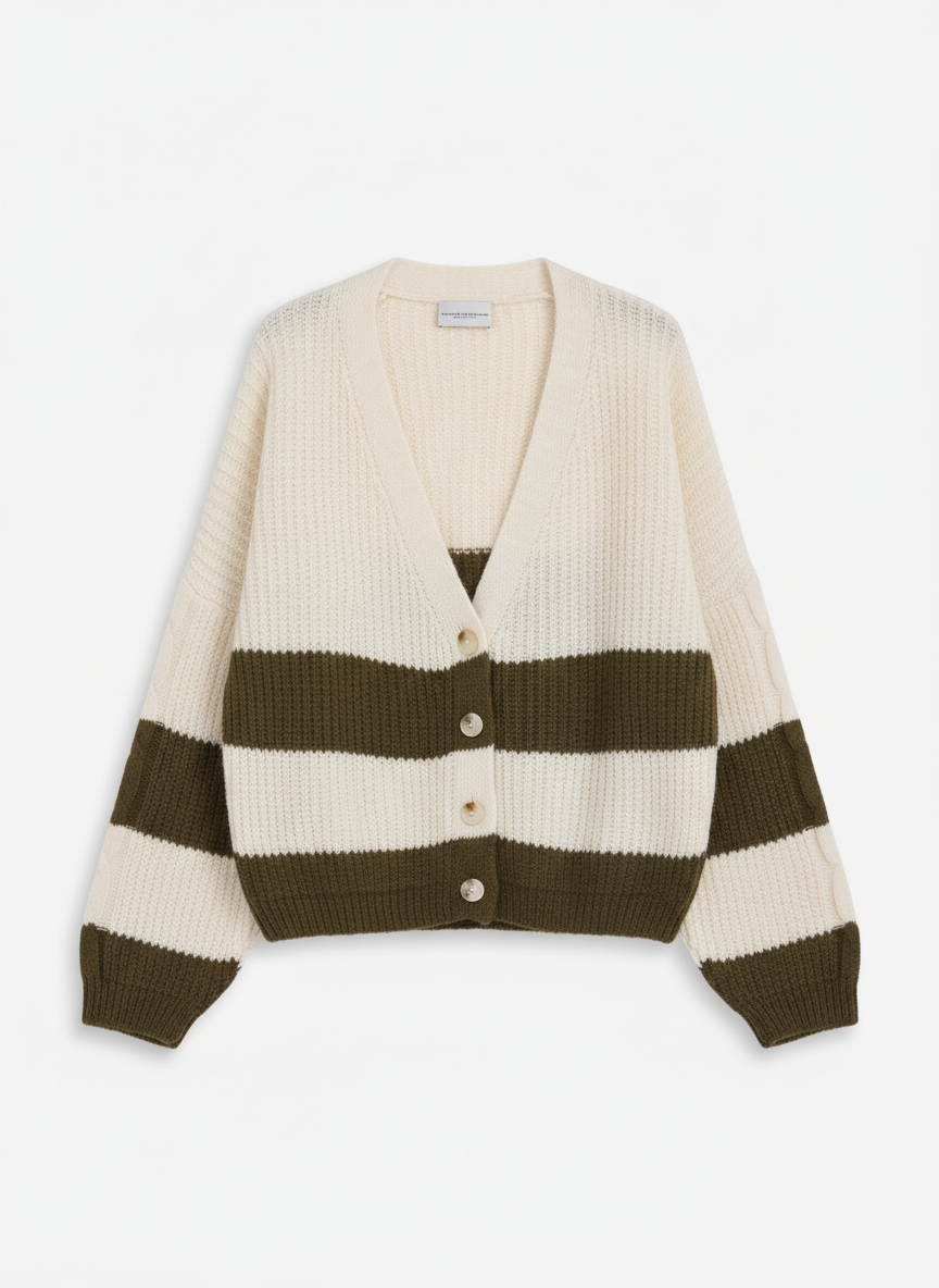 Un cardigan che porta vibrazioni calde e morbide, con quelle maxi righe che fanno subito “comfort ma con stile”. La trama è corposa, avvolgente, e si abbina con quella nonchalance effortless che caratterizza l’eleganza contemporanea di Atos Lombardini — un equilibrio perfetto tra femminilità rilassata e carattere. Un capo versatile, da infilare al volo quando vuoi sentirti cute senza rinunciare al mood cozy.