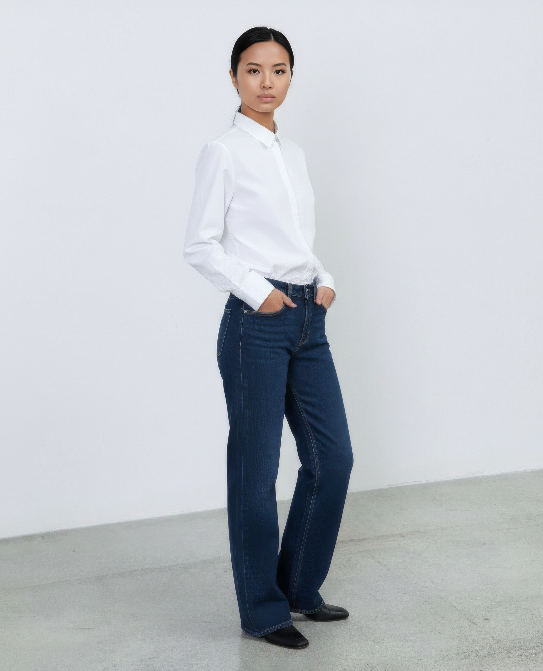 Jeans palazzo Atos Lombardini con gamba ampia e linea fluida, ispirati allo stile sartoriale ma con la versatilità del denim. La vita regolare e il fit morbido valorizzano la silhouette, rendendoli perfetti per look casual chic o abbinamenti più eleganti con camicie e blazer. Un capo evergreen dal fascino contemporaneo.