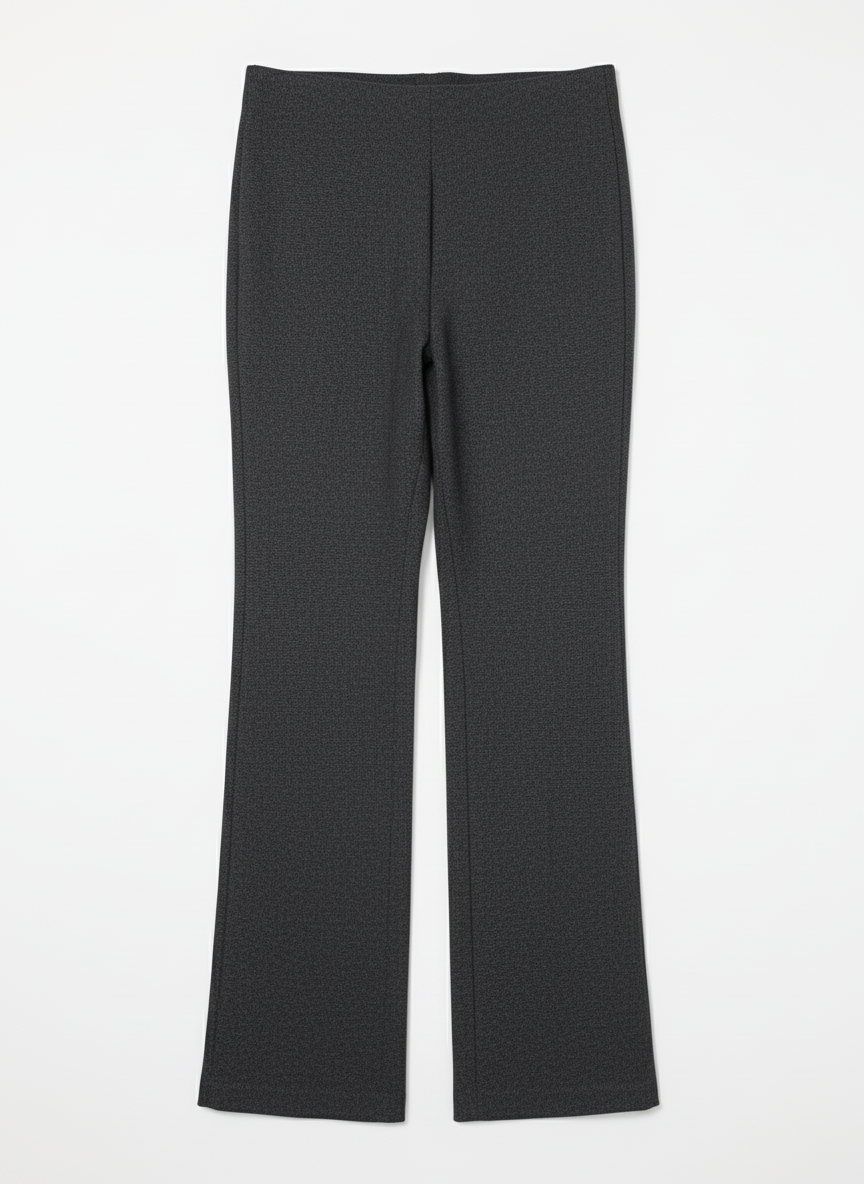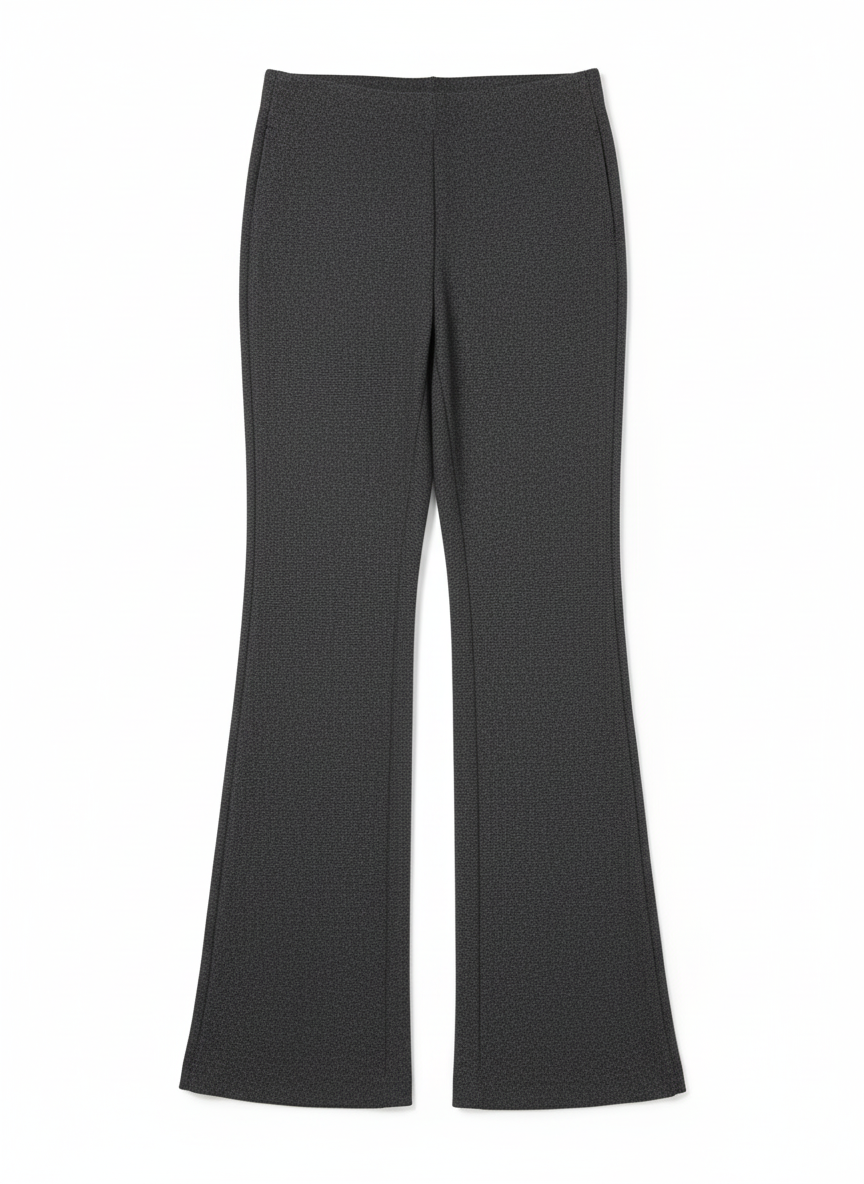 Pantalone a zampa dal taglio elegante e intramontabile, studiato per valorizzare la silhouette con una gamba leggermente svasata che dona slancio e armonia alla figura. La vita regolare garantisce comfort e una vestibilità naturale per tutta la giornata, rendendo questo modello perfetto sia per il lavoro che per le occasioni più curate.