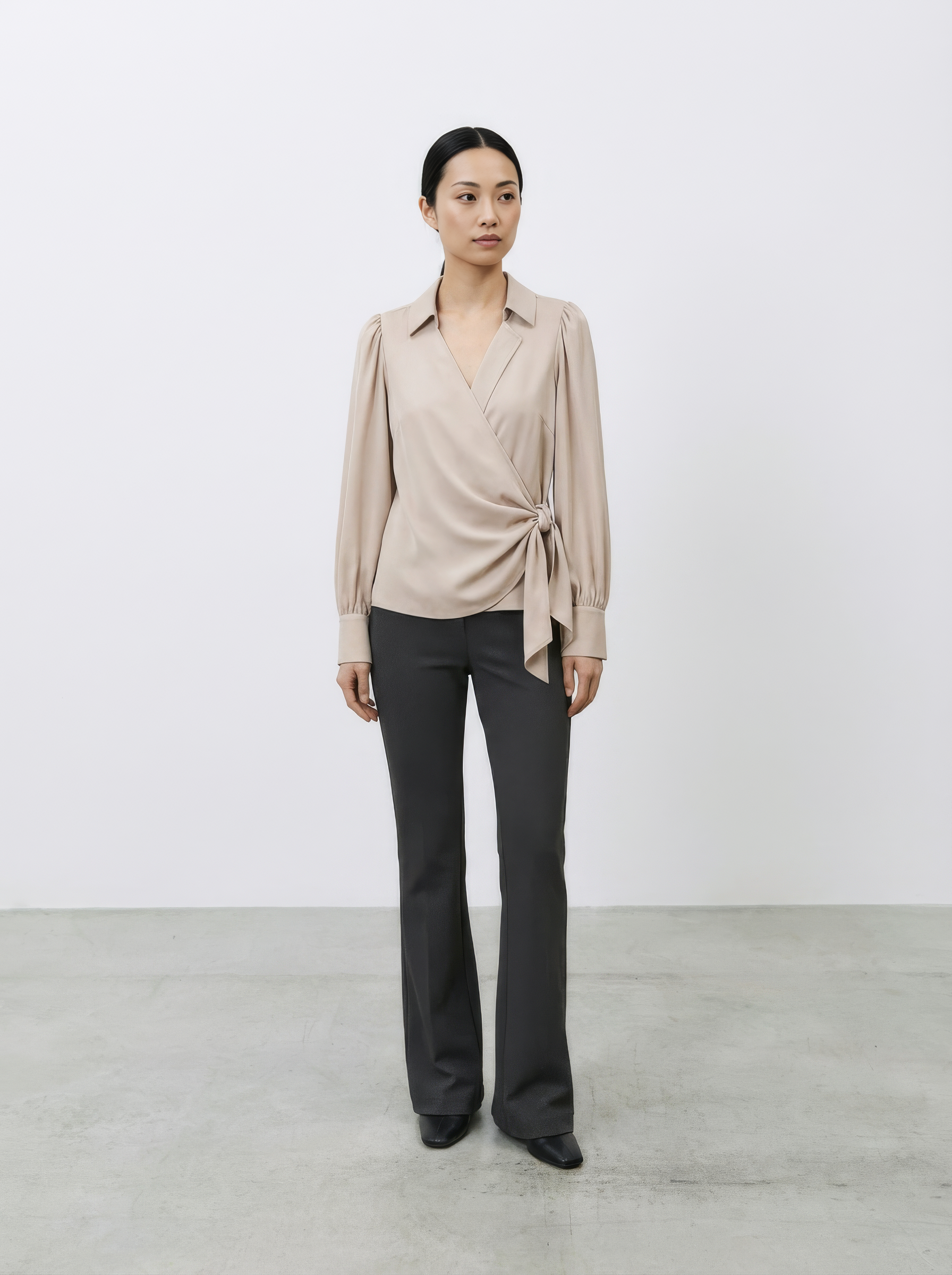 Il design pulito permette abbinamenti versatili: camicie fluide, top essenziali o blazer strutturati si integrano alla perfezione, creando look moderni e femminili con una linea raffinata e impeccabile.